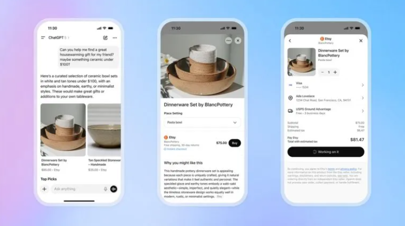 Além disso, a OpenAI apresentou o Agentic Commerce Protocol, um protocolo aberto que padroniza a comunicação entre IA, lojistas e meios de pagamento, criando espaço para que outros agentes digitais também ofereçam compras instantâneas no futuro.